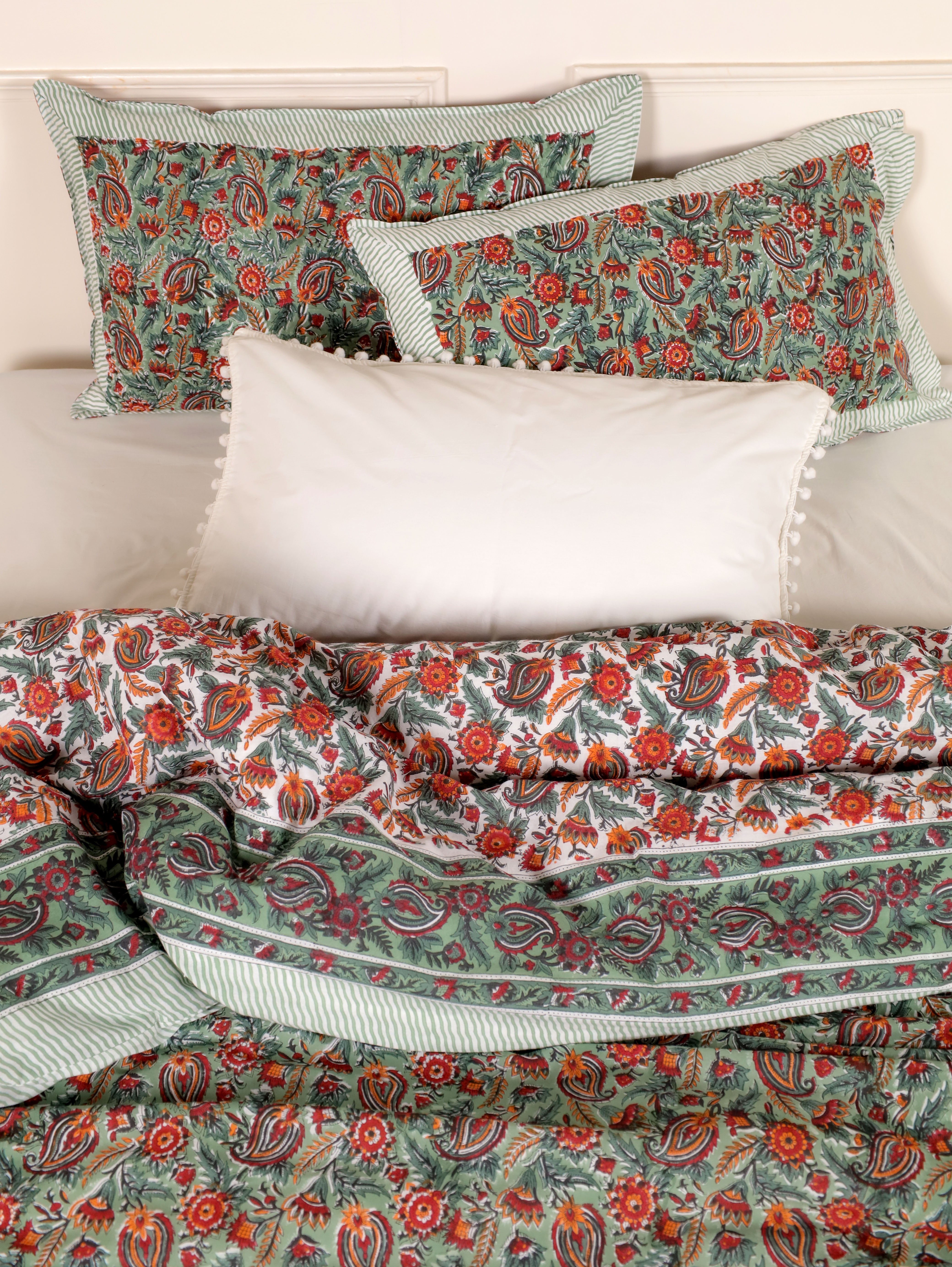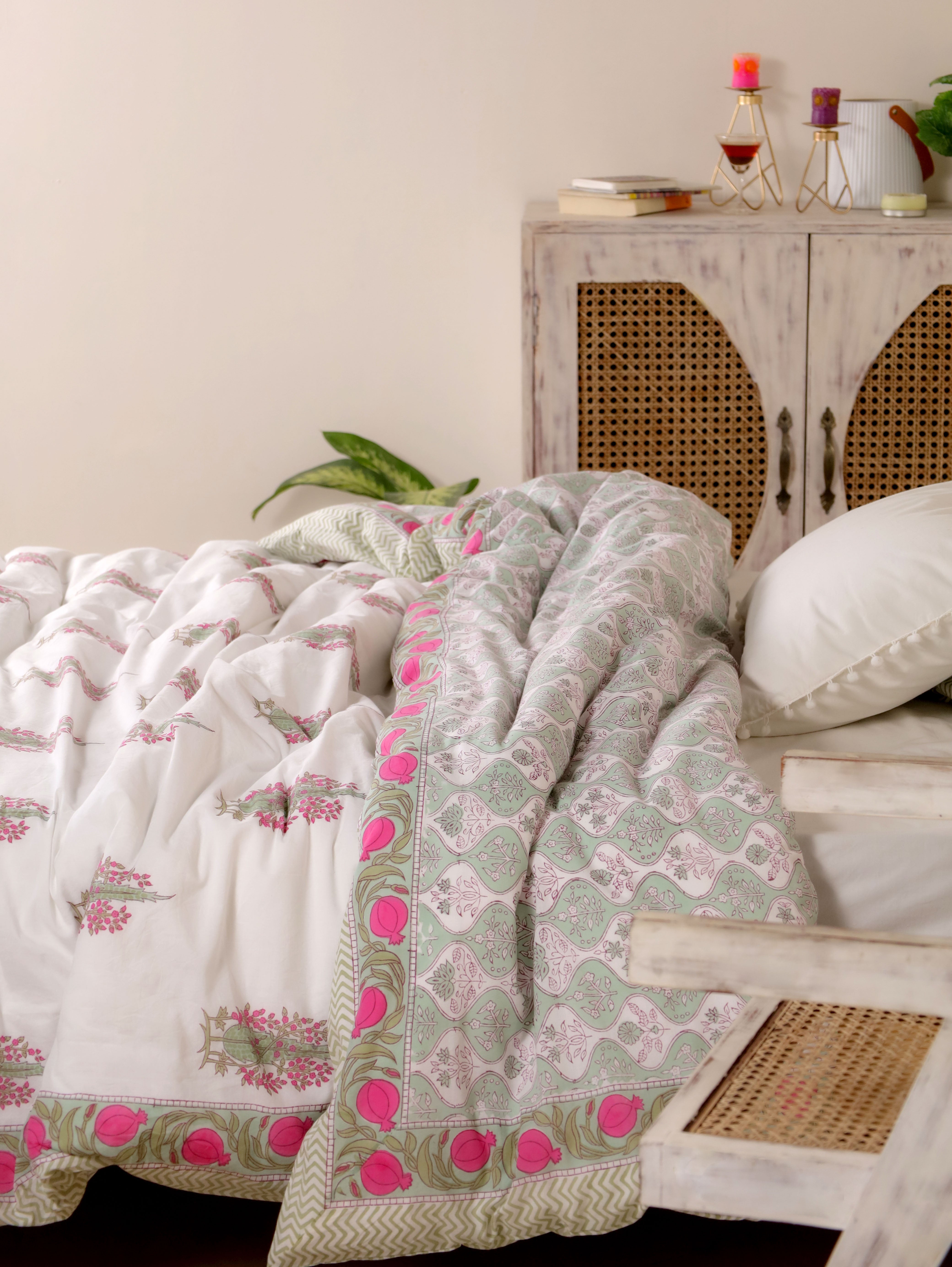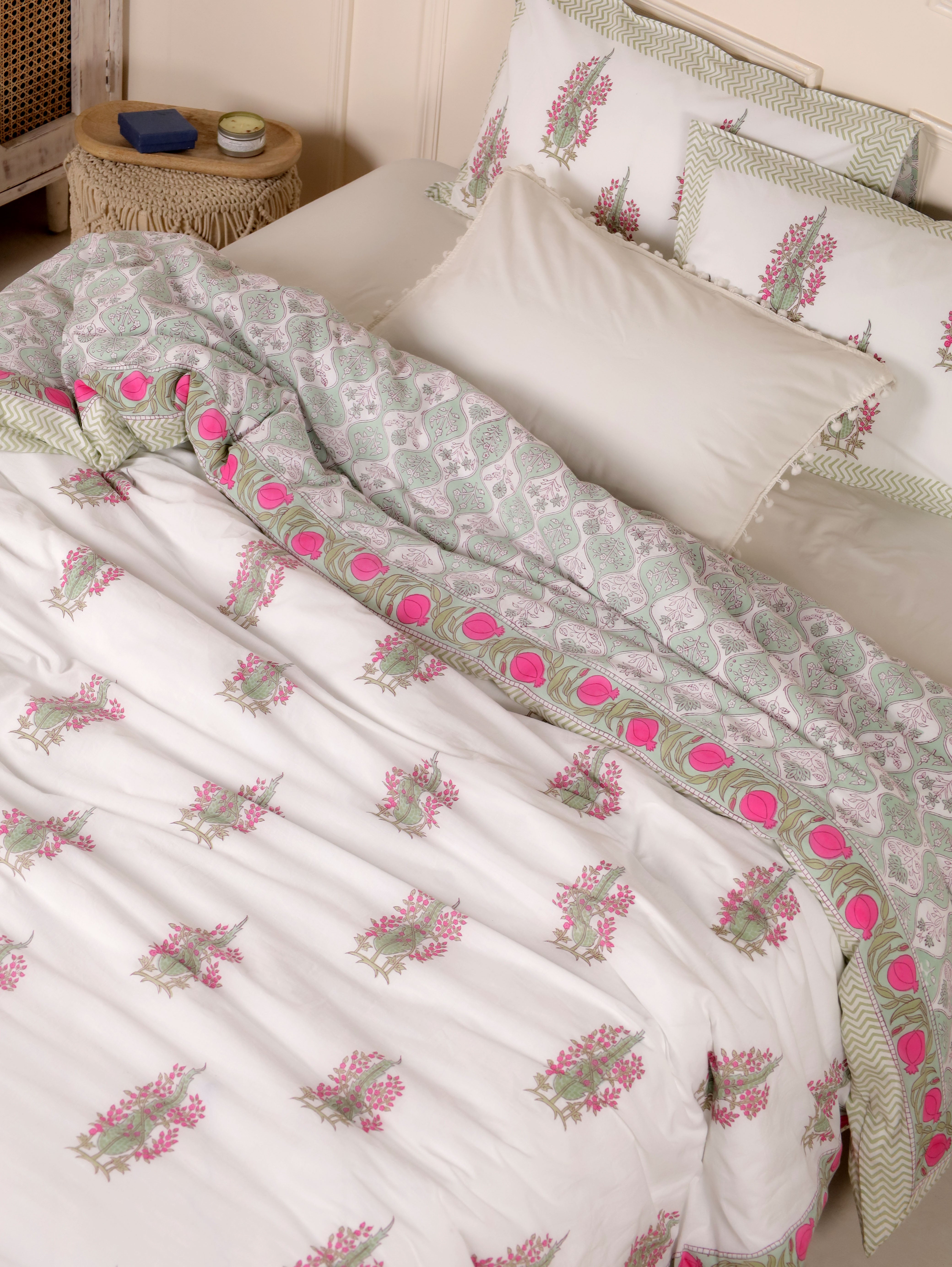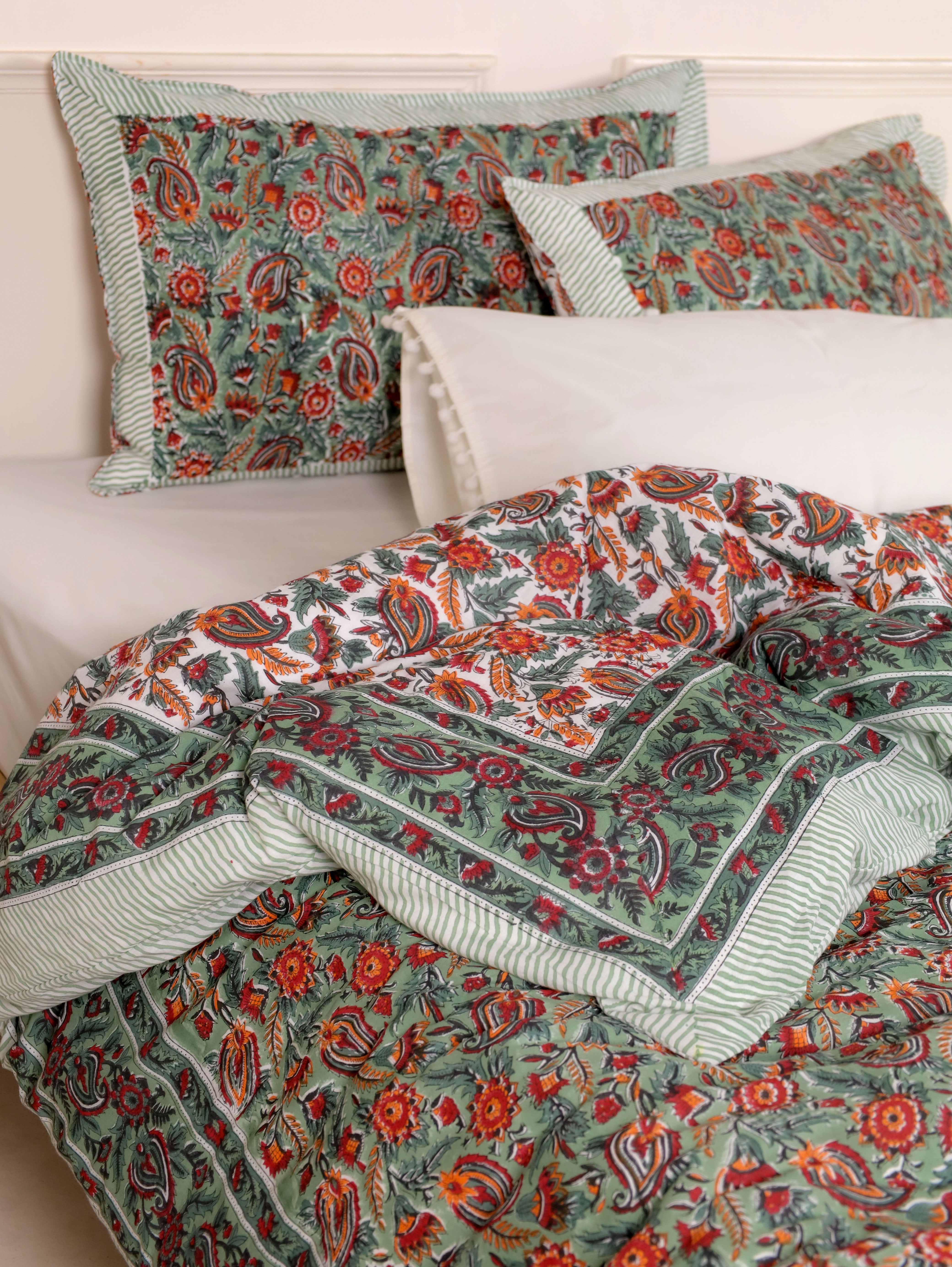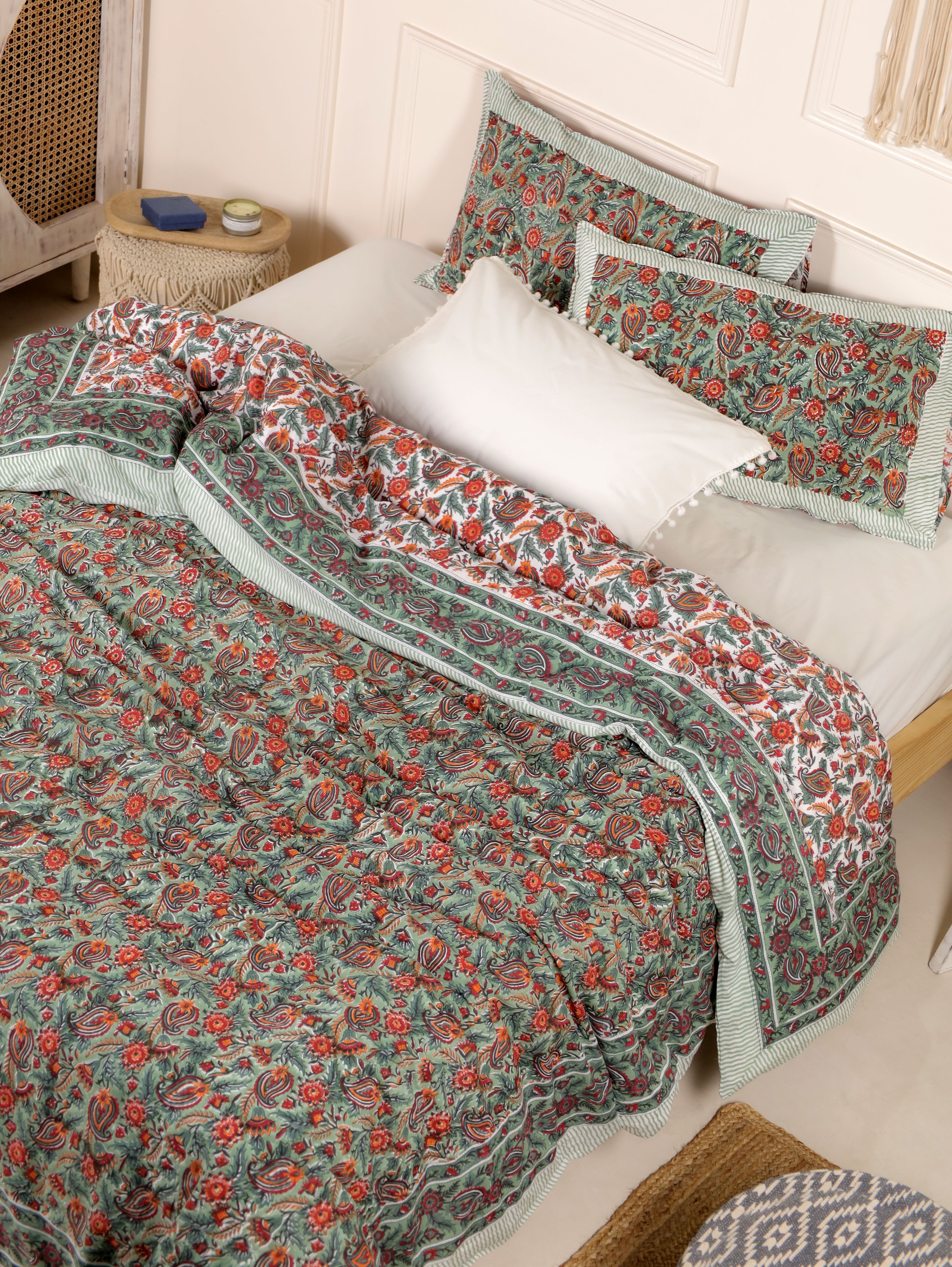 Hand Block Printed Duvet Cover/Quilt - Sea Green Floral