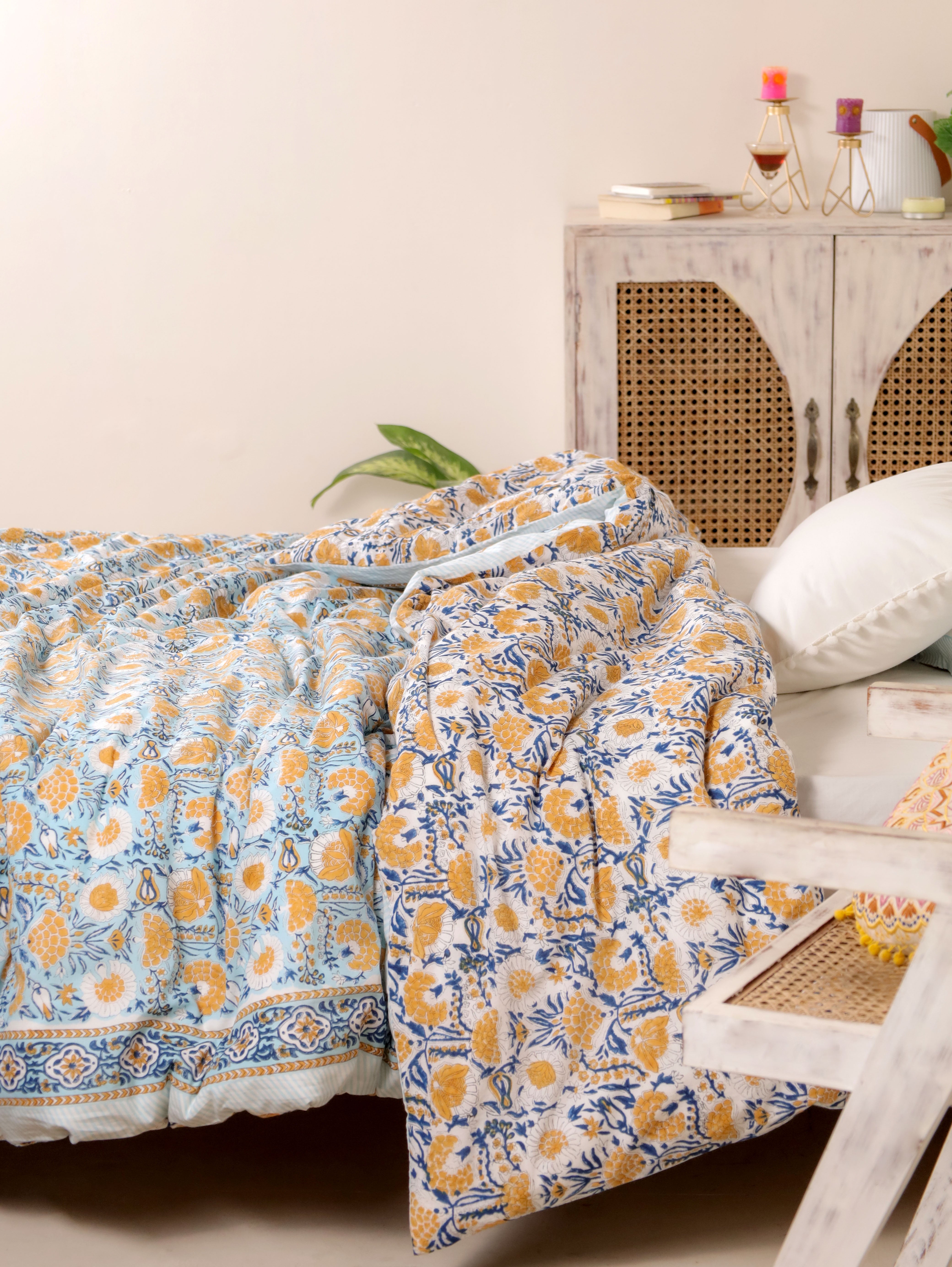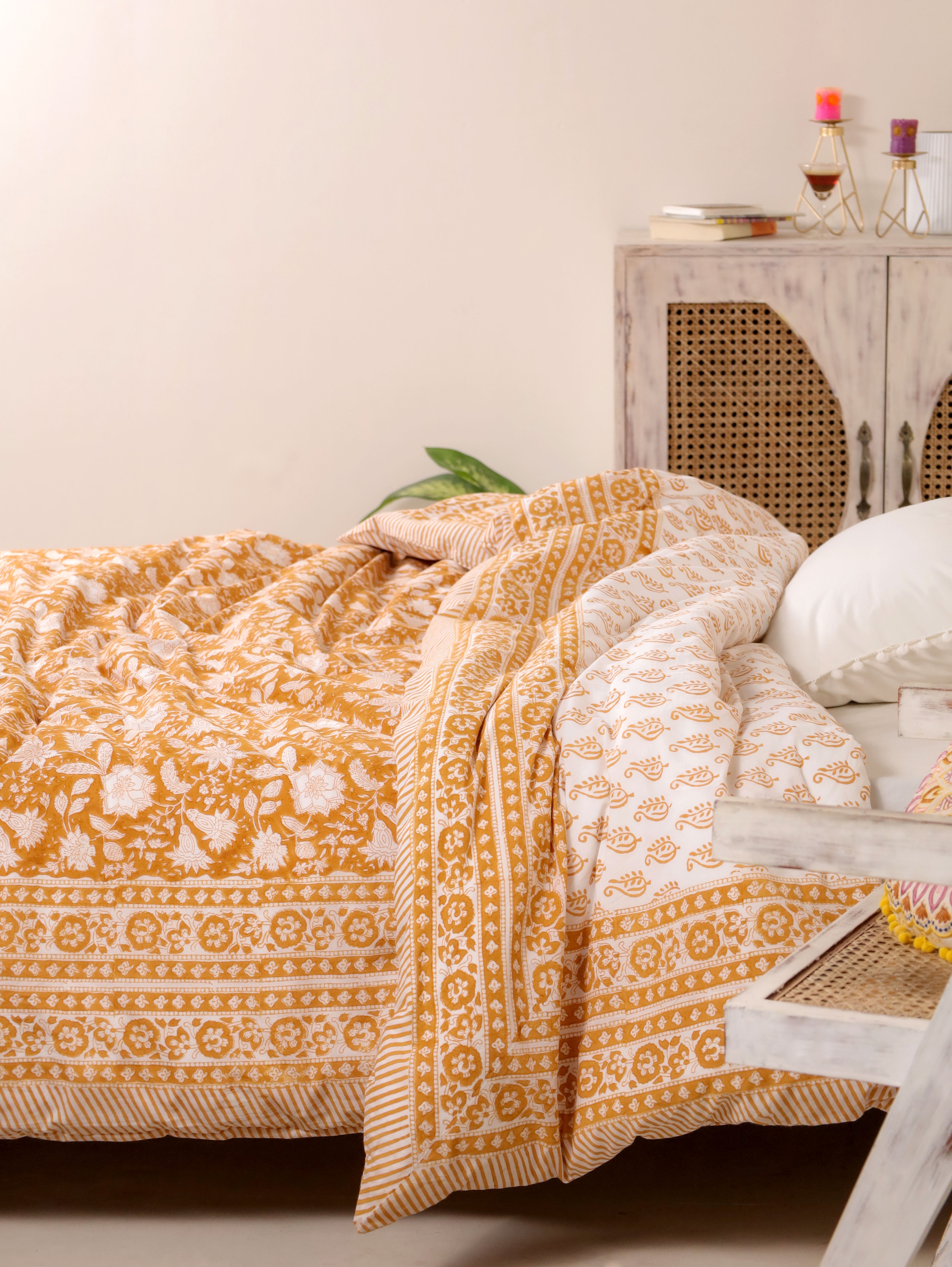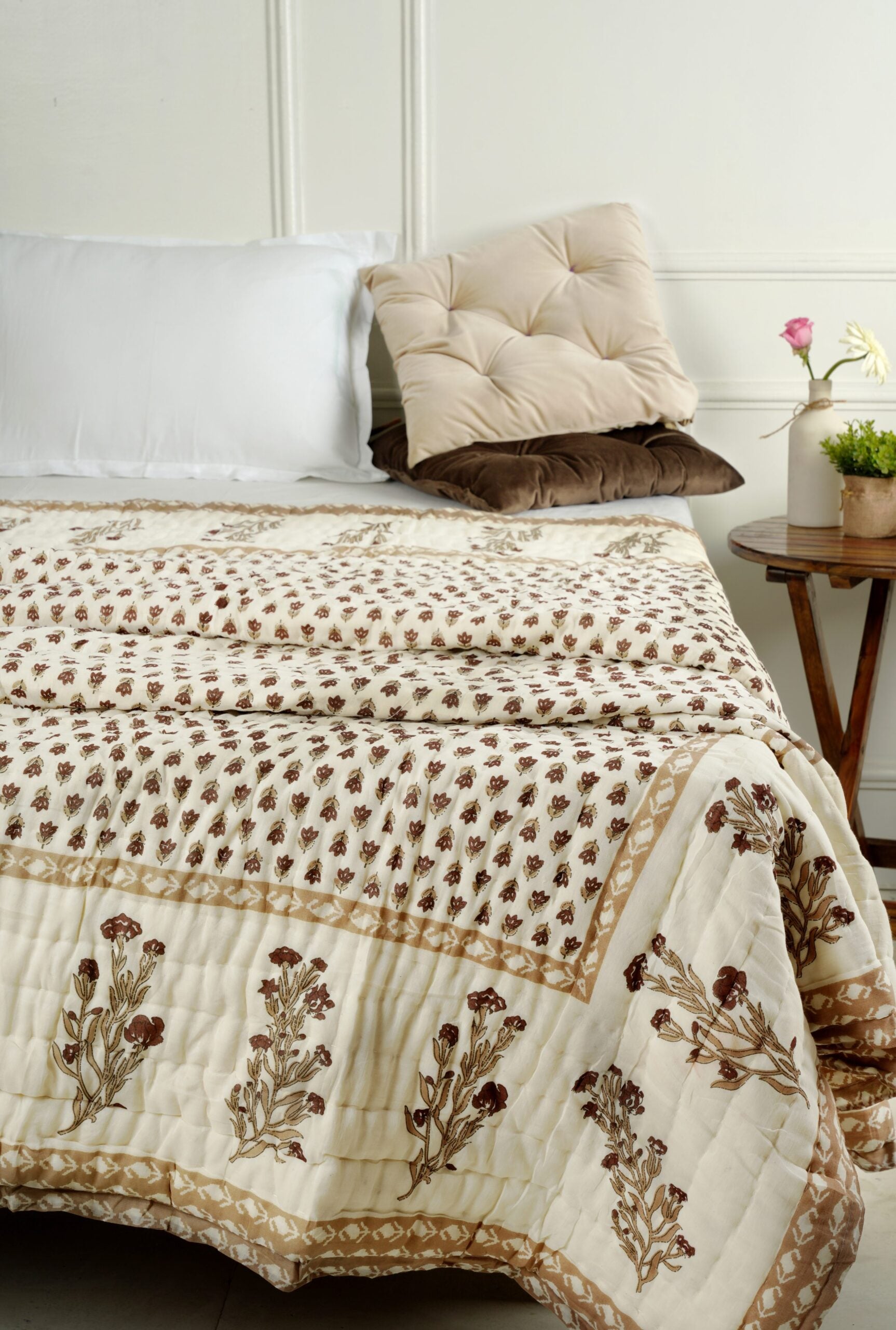 Hand Block Printed Duvet Cover/Quilt - Autumn Flowers