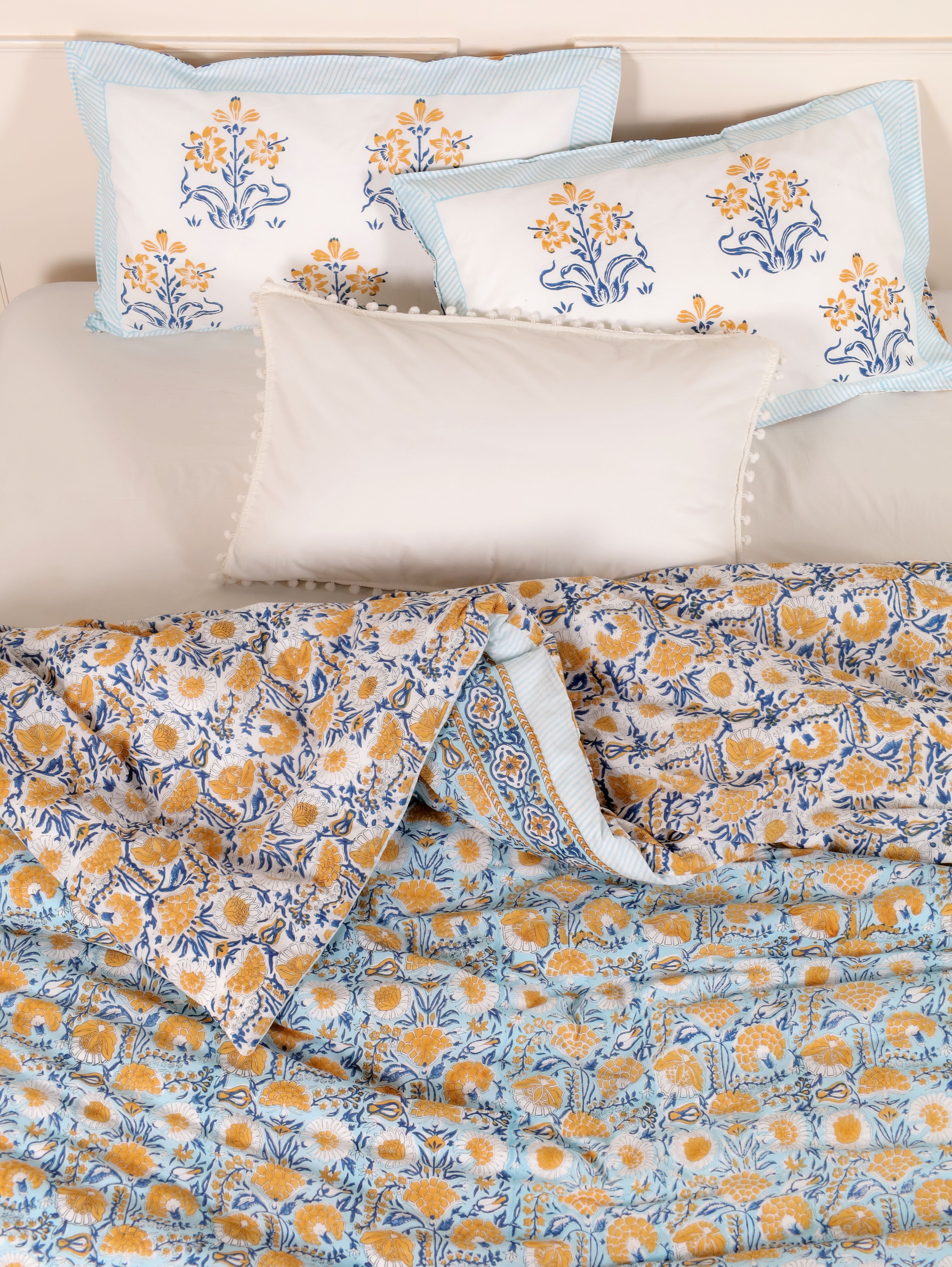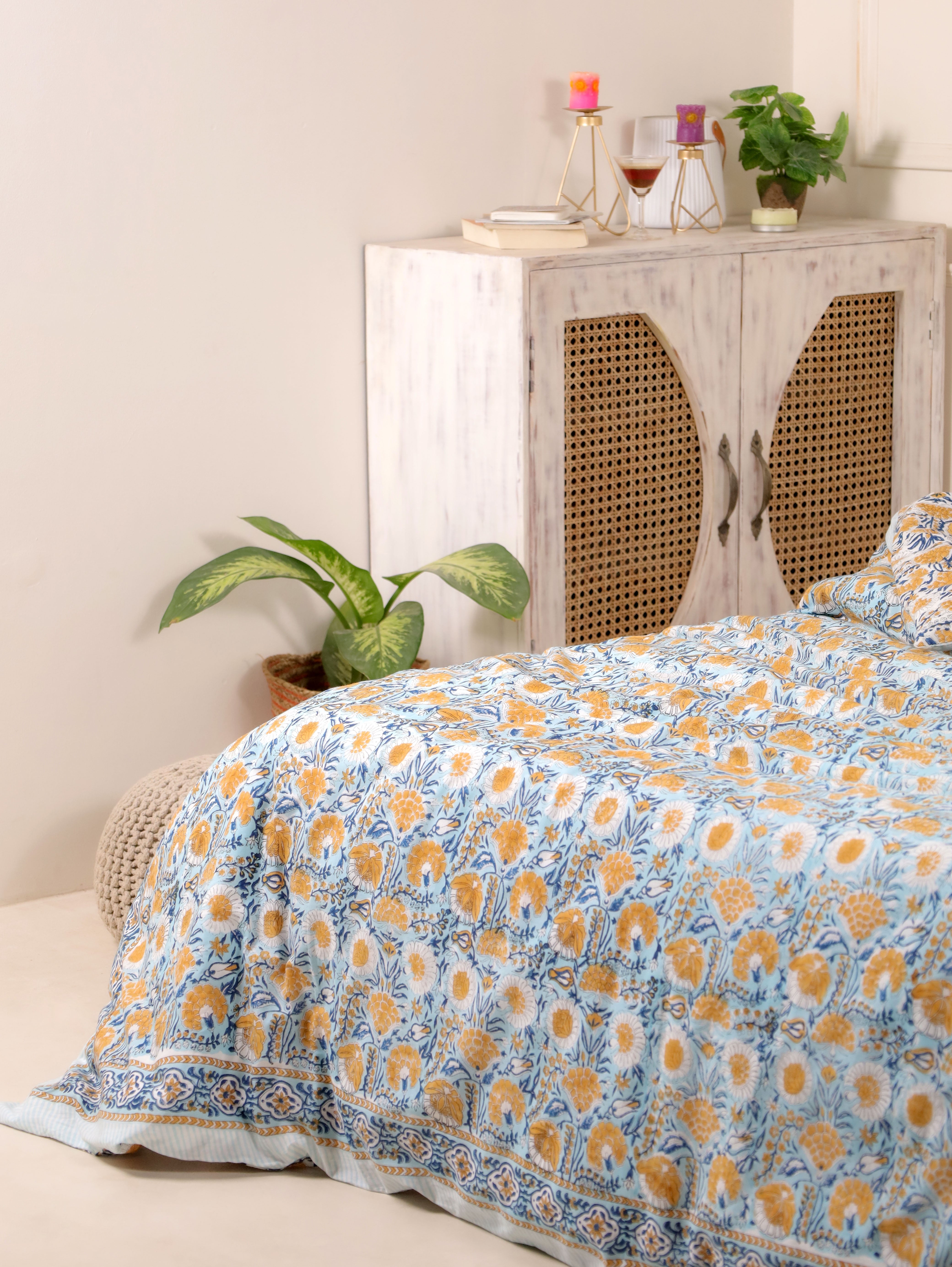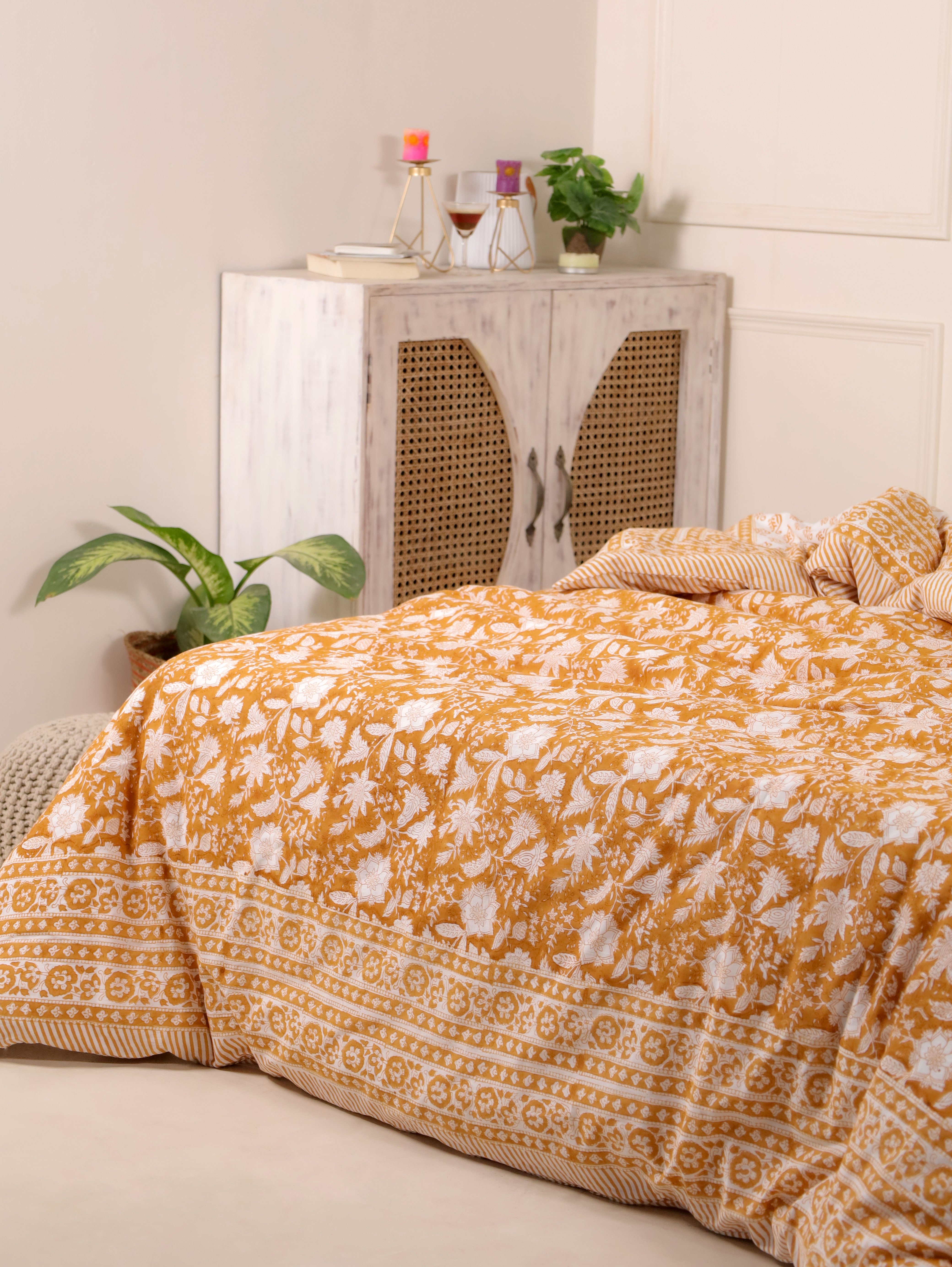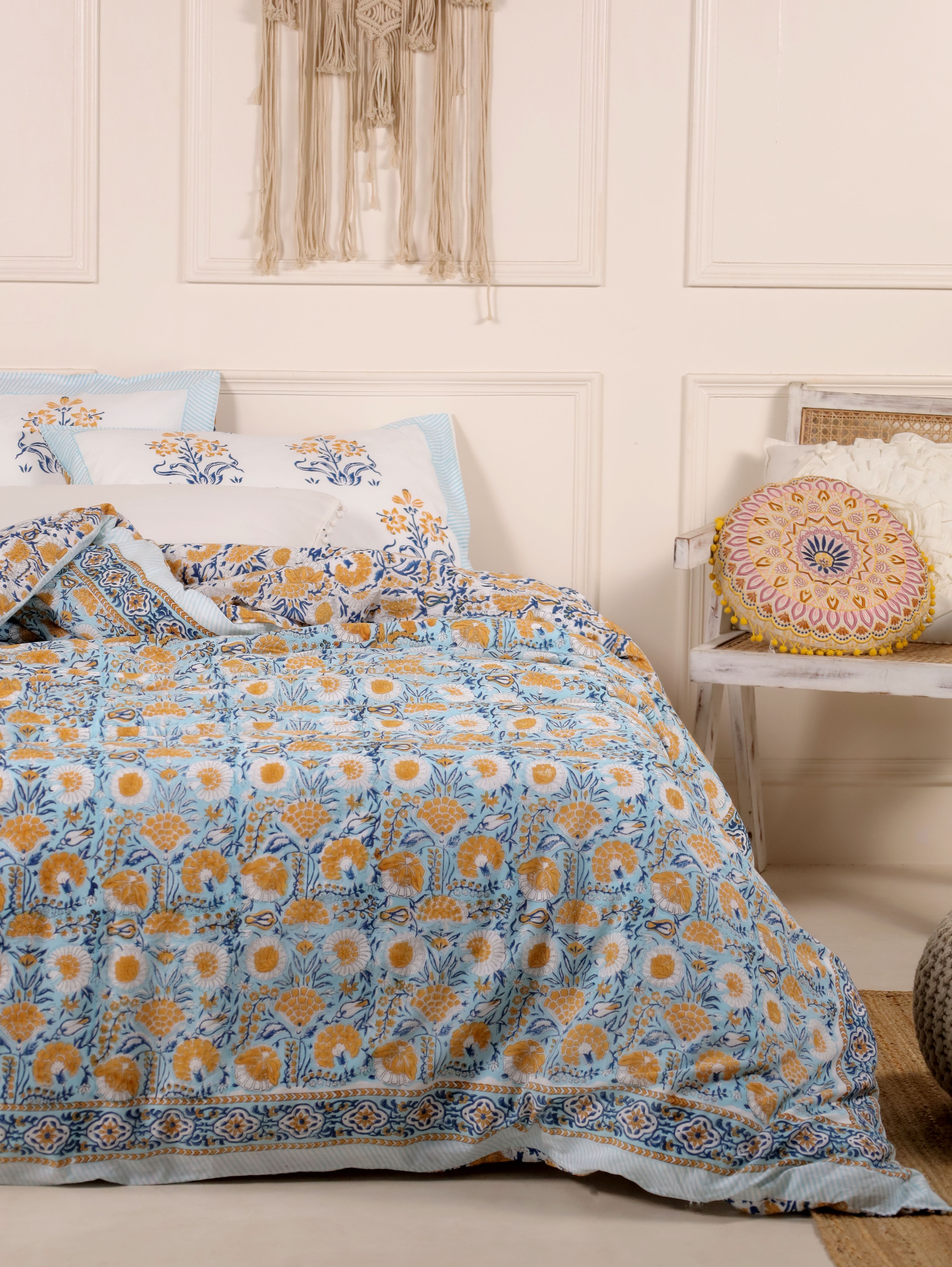 Hand Block Printed Duvet Cover/Quilt - Autumn Flowers